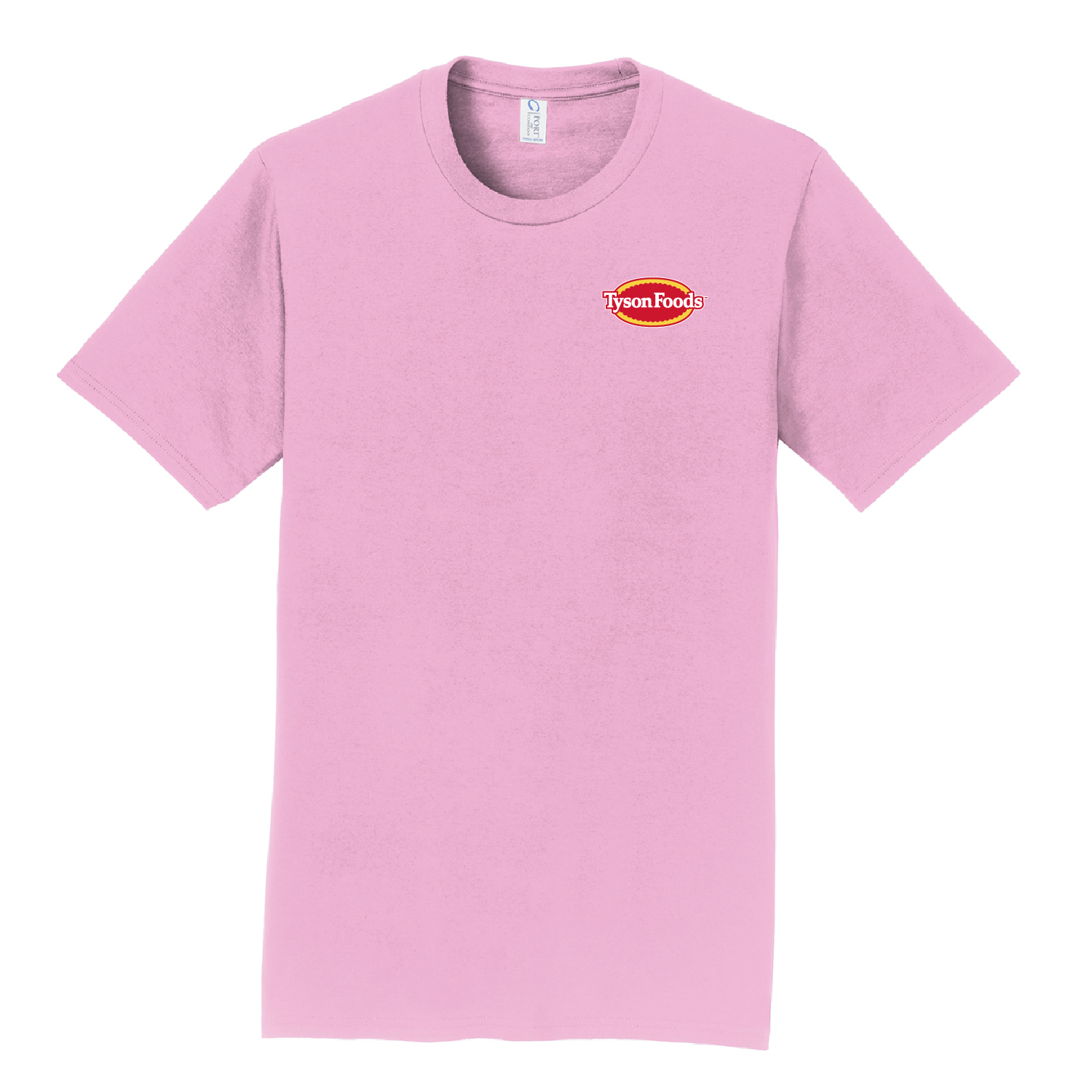 Make a statement that matters with the In October We Wear Pink Tee- a soft, lightweight shirt designed to raise awareness and show support all month long. Made from 4.5 oz., 100% ring spun cotton, this tee delivers all-day comfort with a smooth, breathable feel. With a flattering fit and bold message, it's perfect for wearing at walks, fundraisers, or just around town to spark conversation and solidarity. Best of all: a portion of each sale will be donated to the American Cancer Society in Tyson Foods name, supporting life-saving research and resources for those affected by breast cancer.